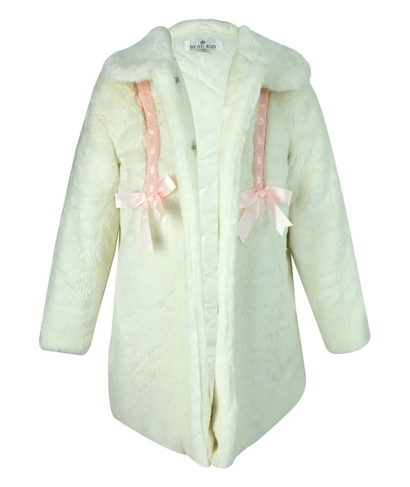 Young girls love to go out and enjoy life even during winter, but the only problem, it's so cold! And for that, we present this BEAU KiD girls faux fur coat with completely quilted lining, including the arms, to counter the winter chill. It also features a lovely detachable fur collar so your little girl can remove it when the weather allows for it. The lace and ribbon trim just make this coat super cute and girly, while the padded faux fur Russian style girls' hat protects the head and ears on one hand, and on the other makes the already beautiful girl, look her best.