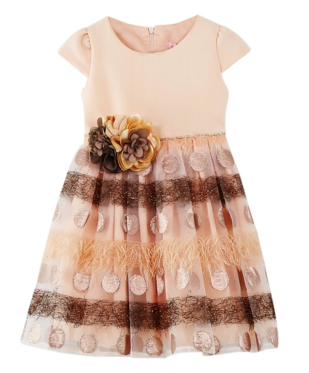 Girls Salmon Pink Polka Dress - 3 Piece Set - Peach