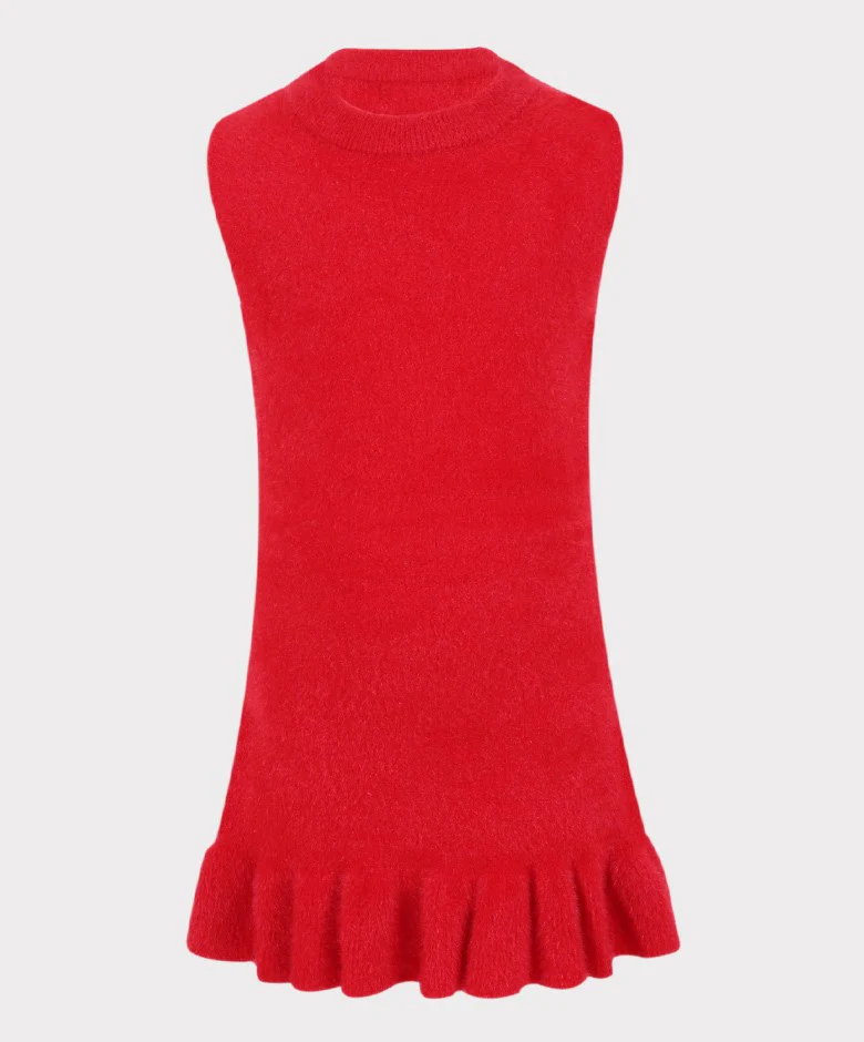 Girls Herringbone Tweed Dress and Cardigan Set - Red