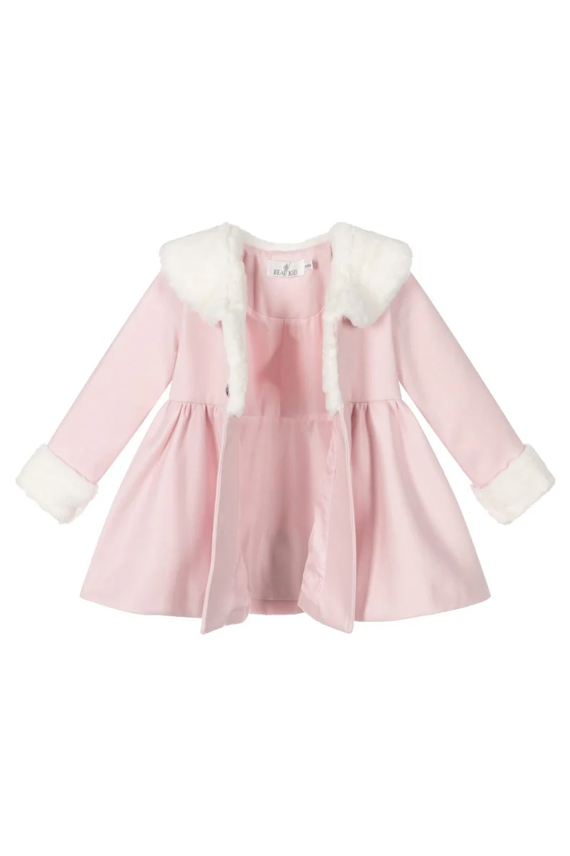 Girls Fur Midi Dress Coat 2 Piece Set - Pink