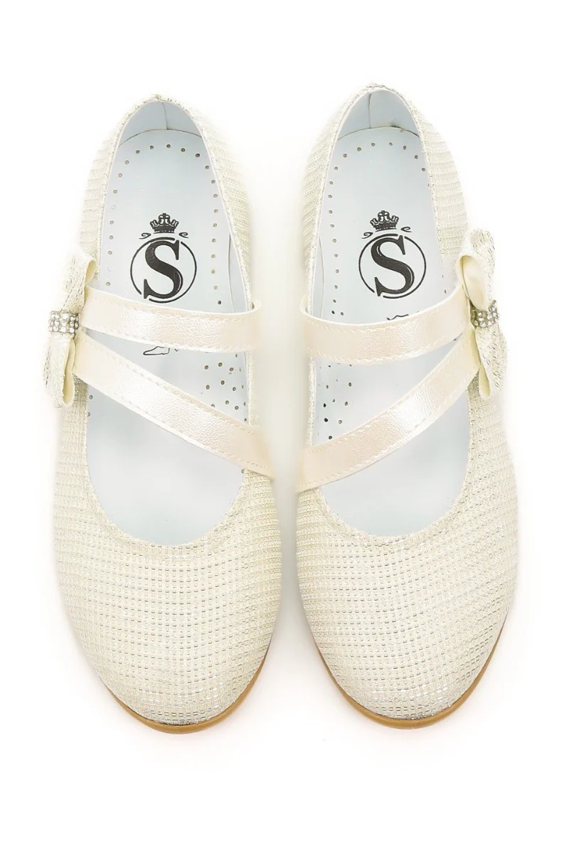 Girls Mary Jane Bow Flat Dress Shoes -MAYA - Ivory Gold
