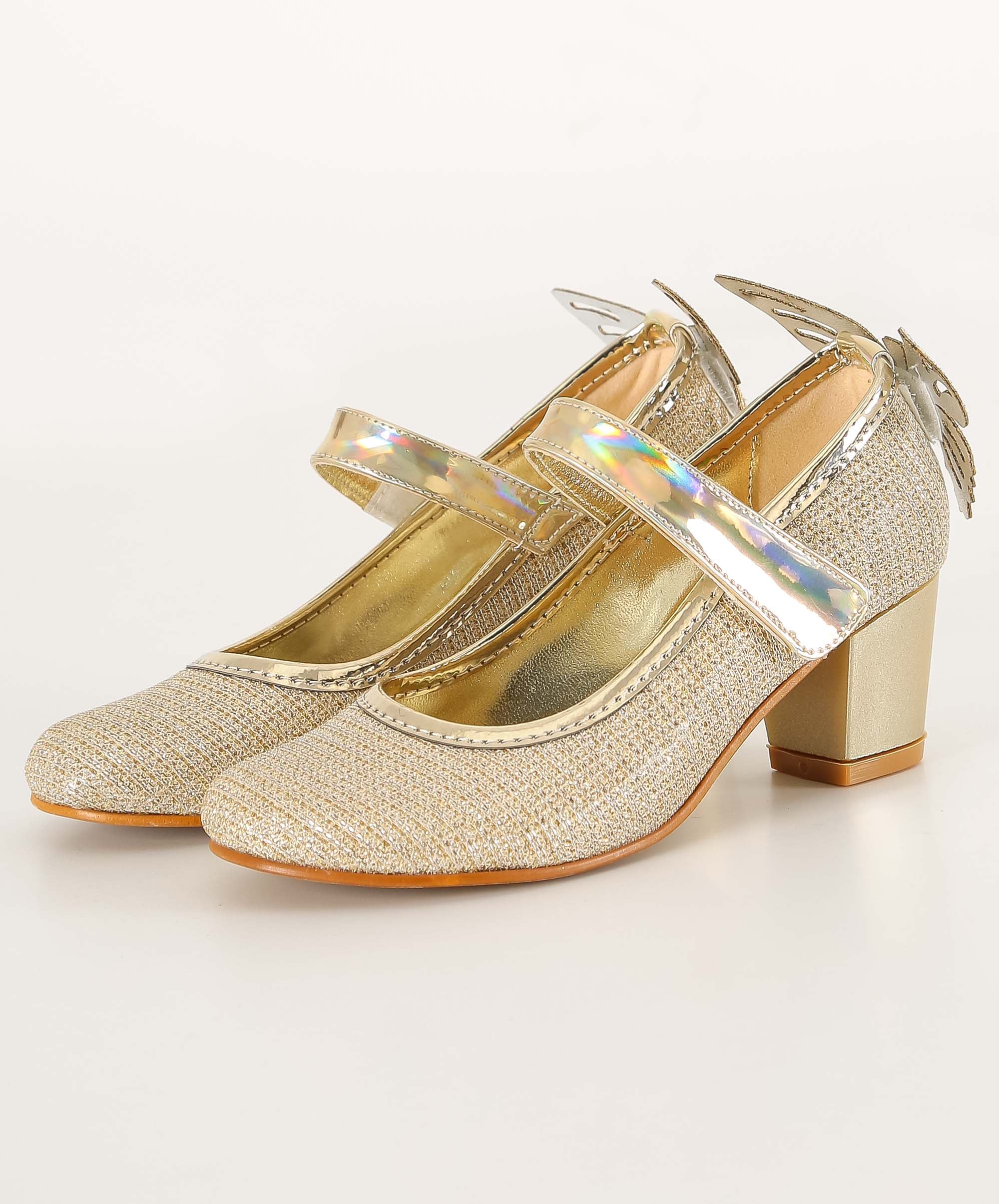 Girls Block Heel Sparkly Mary Jane Shoes - Gold