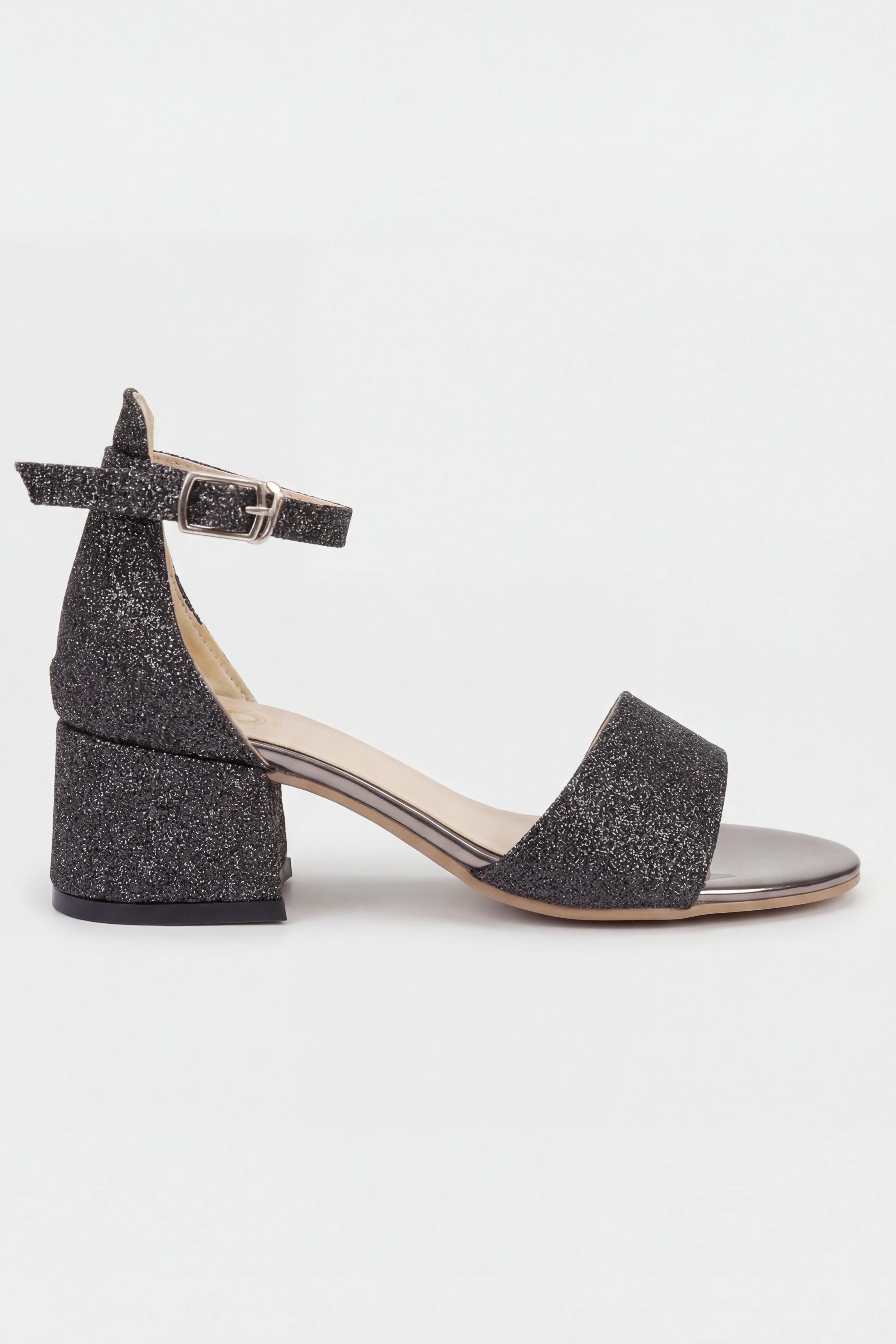 Girls Ankle-Strap Block Heel Sandals - SPARKLE - Dark Silver