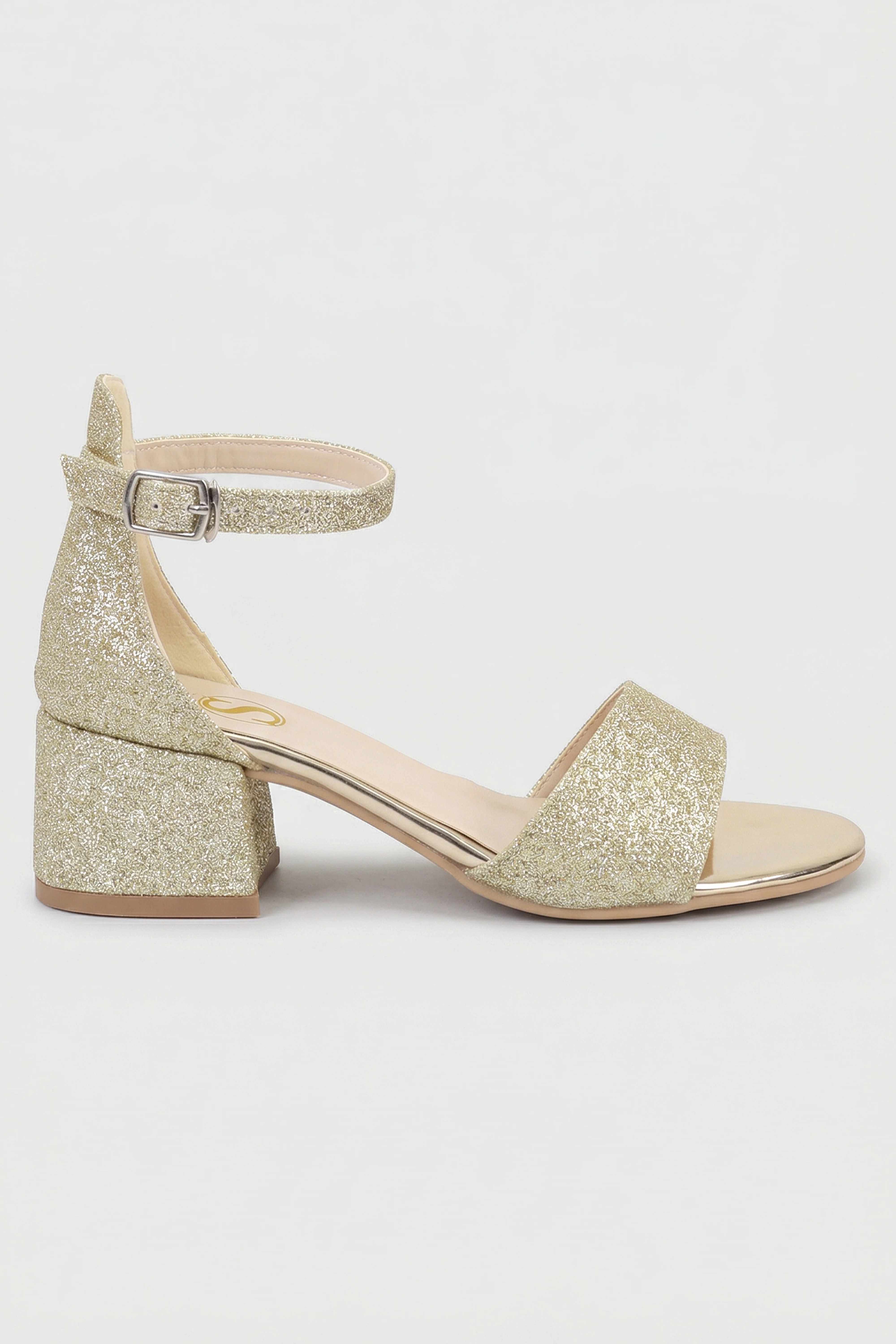 Girls Ankle-Strap Block Heel Sandals - SPARKLE - Gold