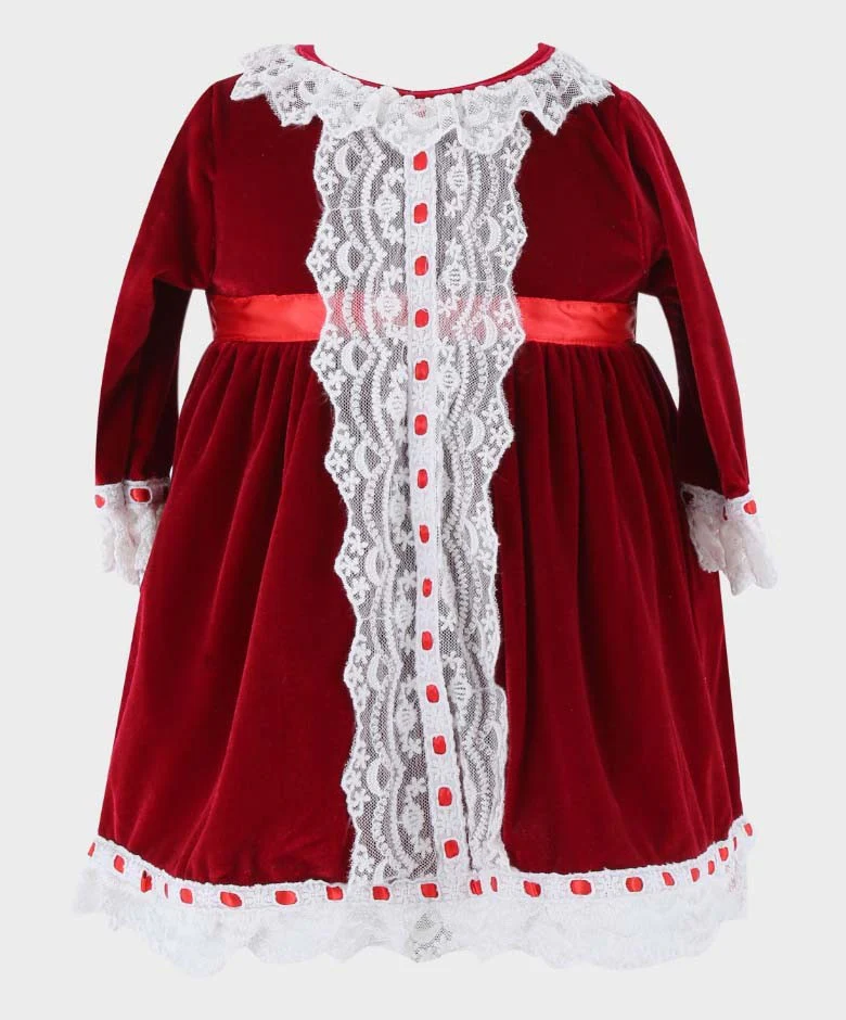 Baby Girls Smocked Velvet Sleeping Wear Set - Wine Red