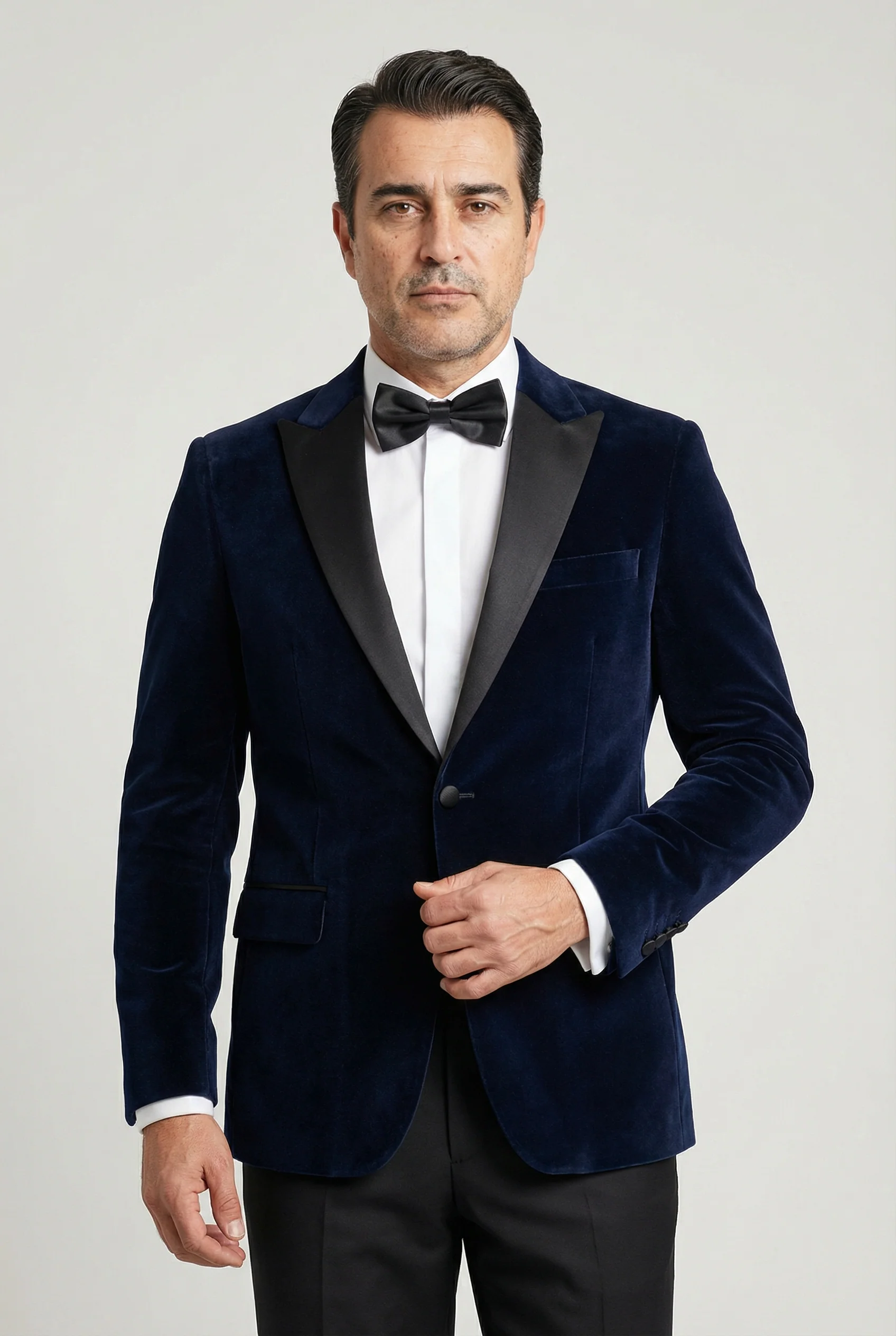 Men’s Velvet Blazer with Satin Peak Lapel – Slim Fit Tuxedo Dinner Jacket for Weddings & Formal Occasions