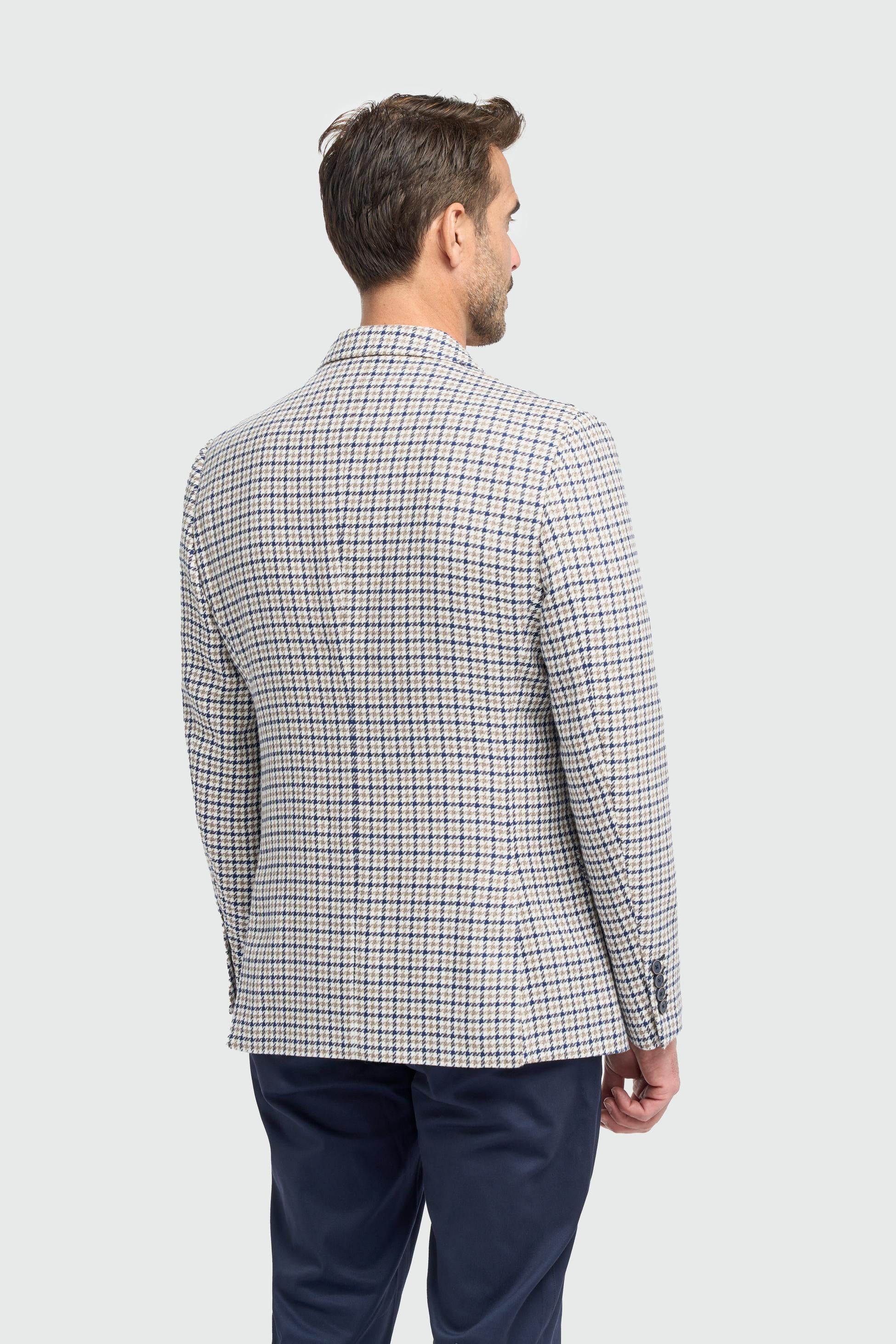 Men’s Beige Cotton Houndstooth Blazer - Bartela