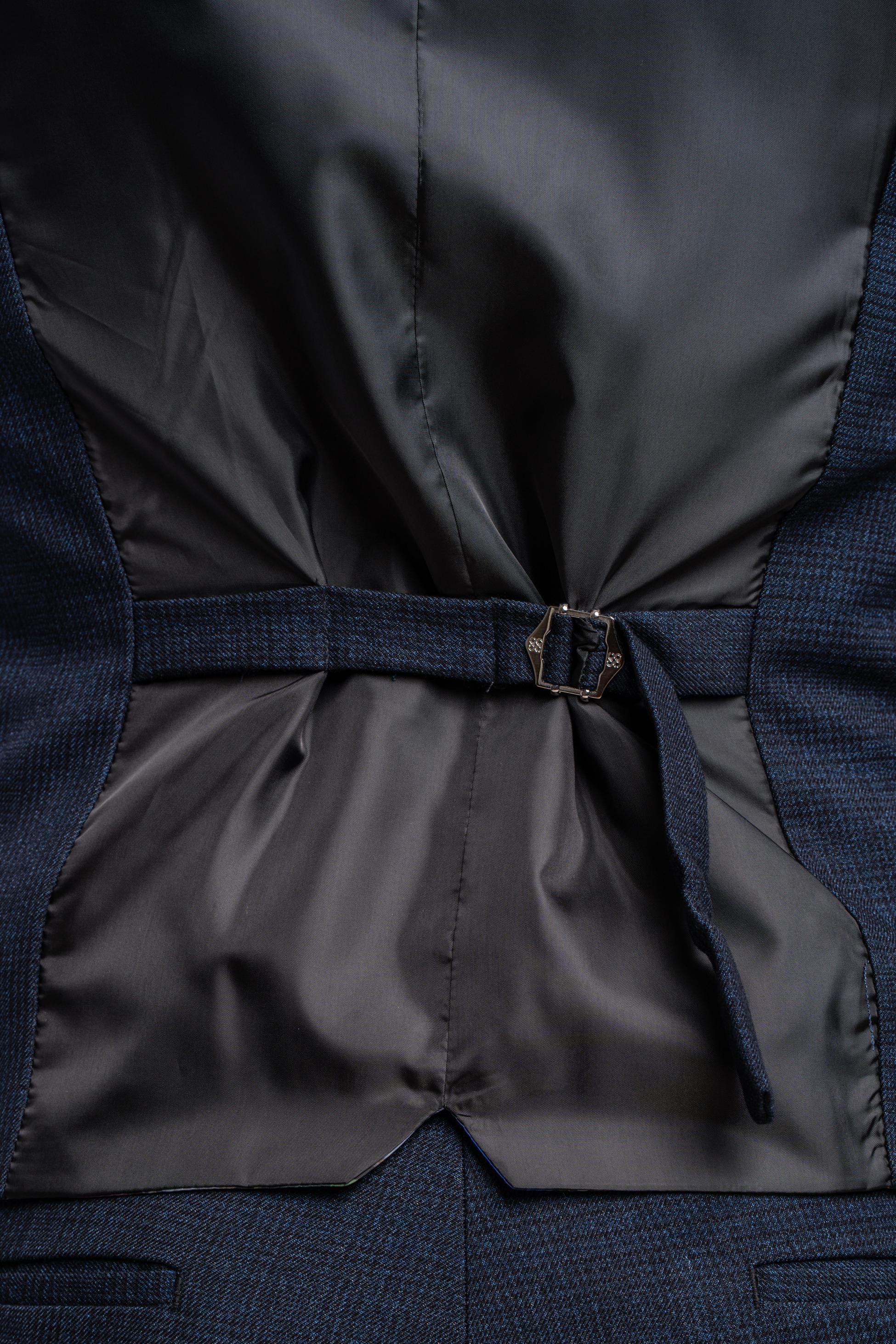 Men's Tweed Glen Check Slim Fit Formal Waistcoat - CARIDI - Navy Blue