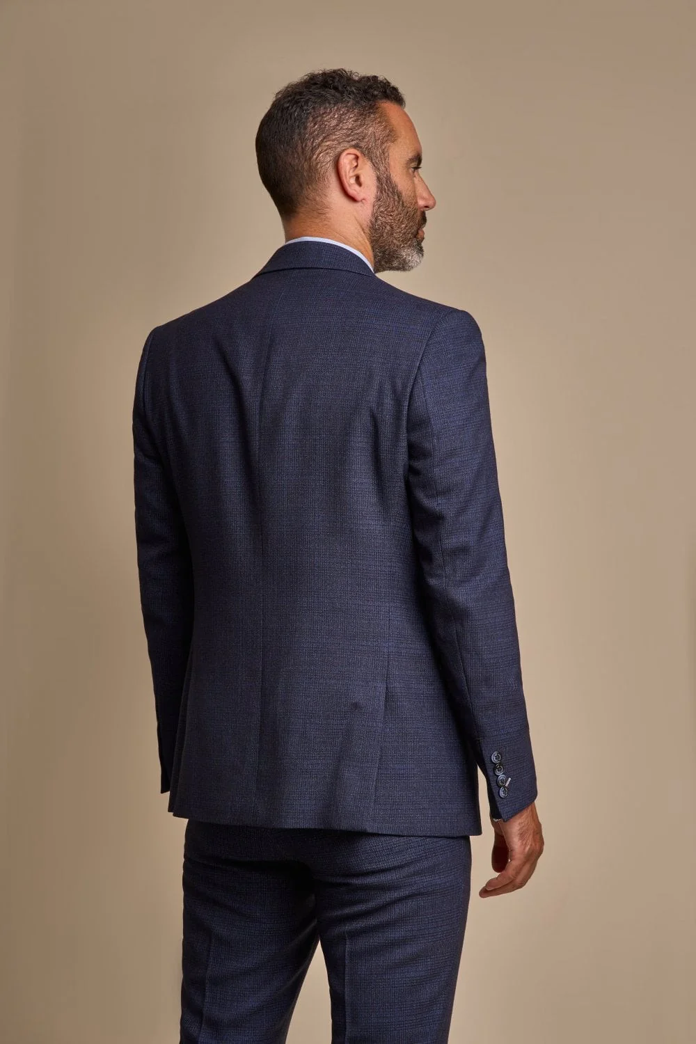 Men's 3-Piece Tweed Glen Check Suit - CARIDI - Navy Blue