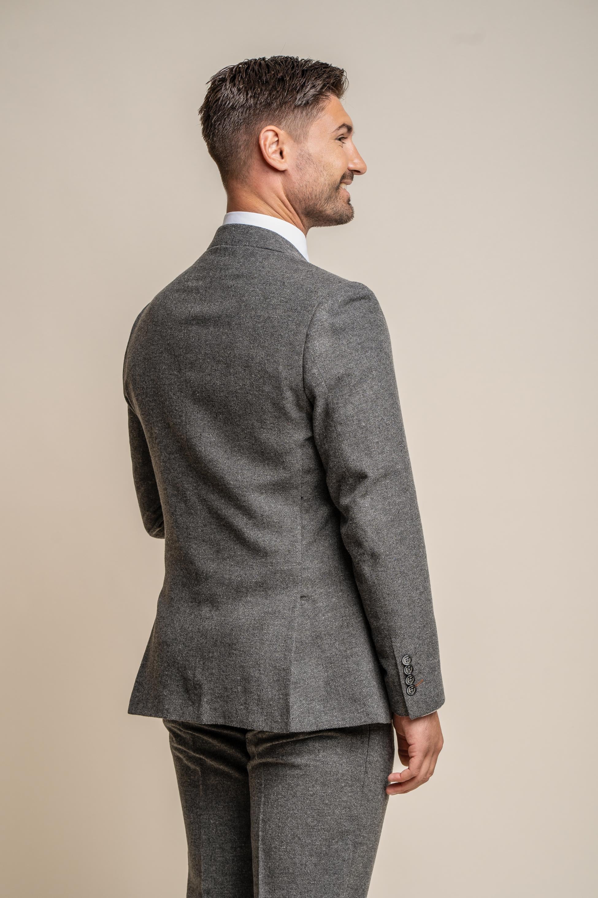 Men’s Grey Herringbone Tweed Suit with Retro Double-Breasted Check Waistcoat- Slim Fit 3-Piece Set for Formal OccasionsÂ
