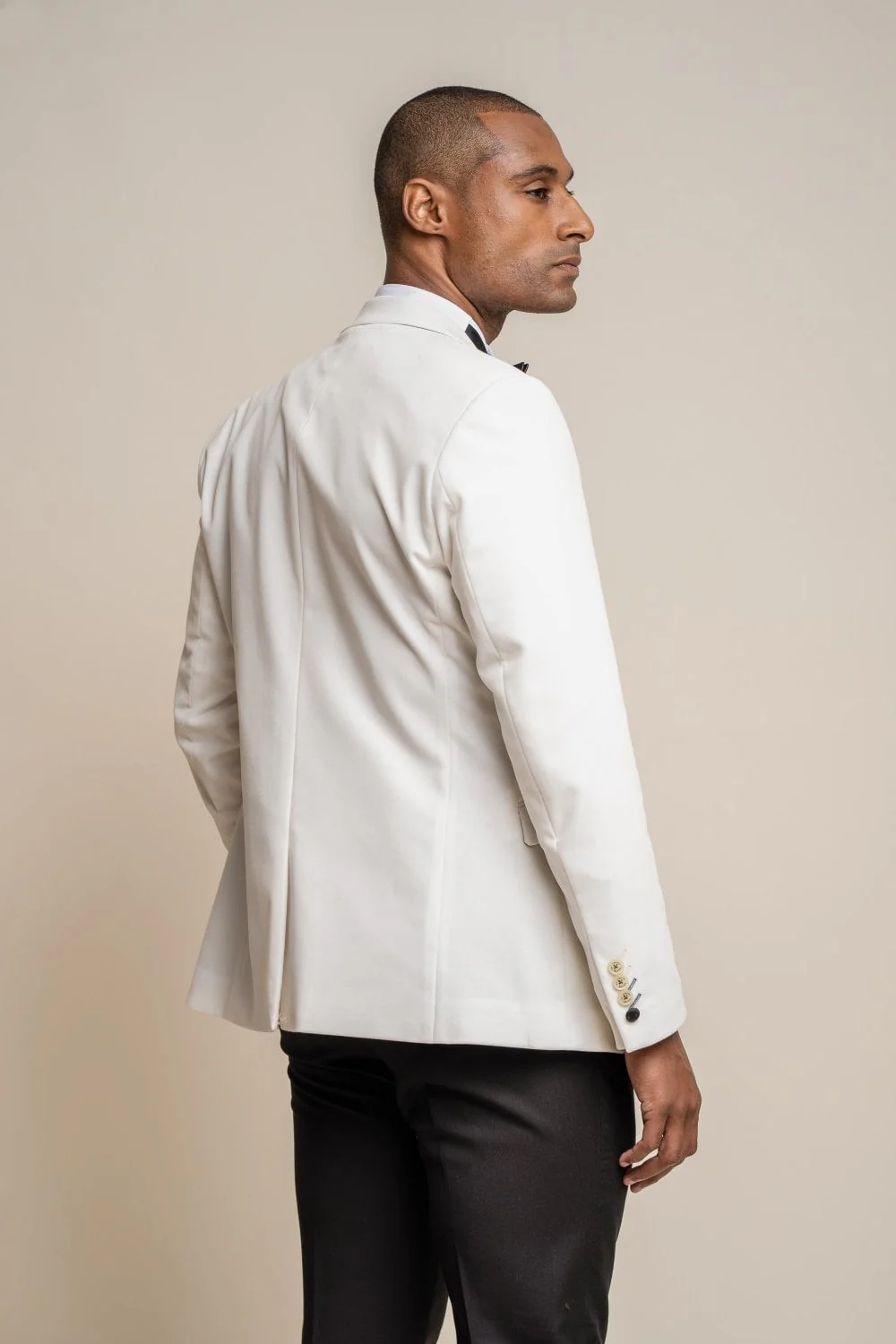 Men's Slim Fit Velvet Tuxedo Blazer - ROSA - Ecru