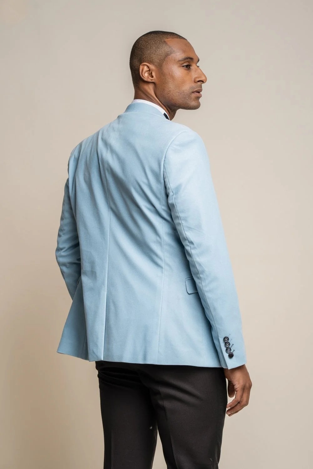 Men's Slim Fit Velvet Tuxedo Blazer - ROSA - Sky Blue