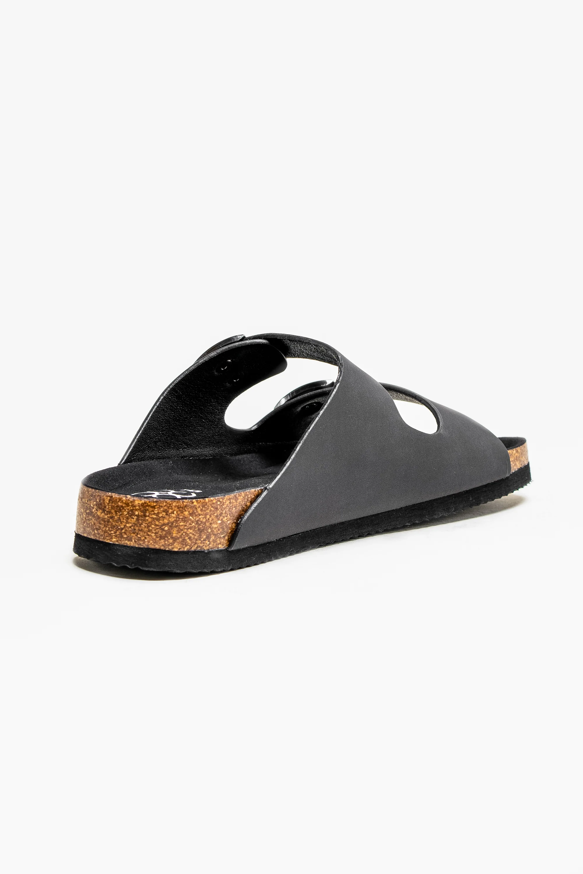 Men's Buckle-Strap Cork Slider Sandals - DAYTONA - Black