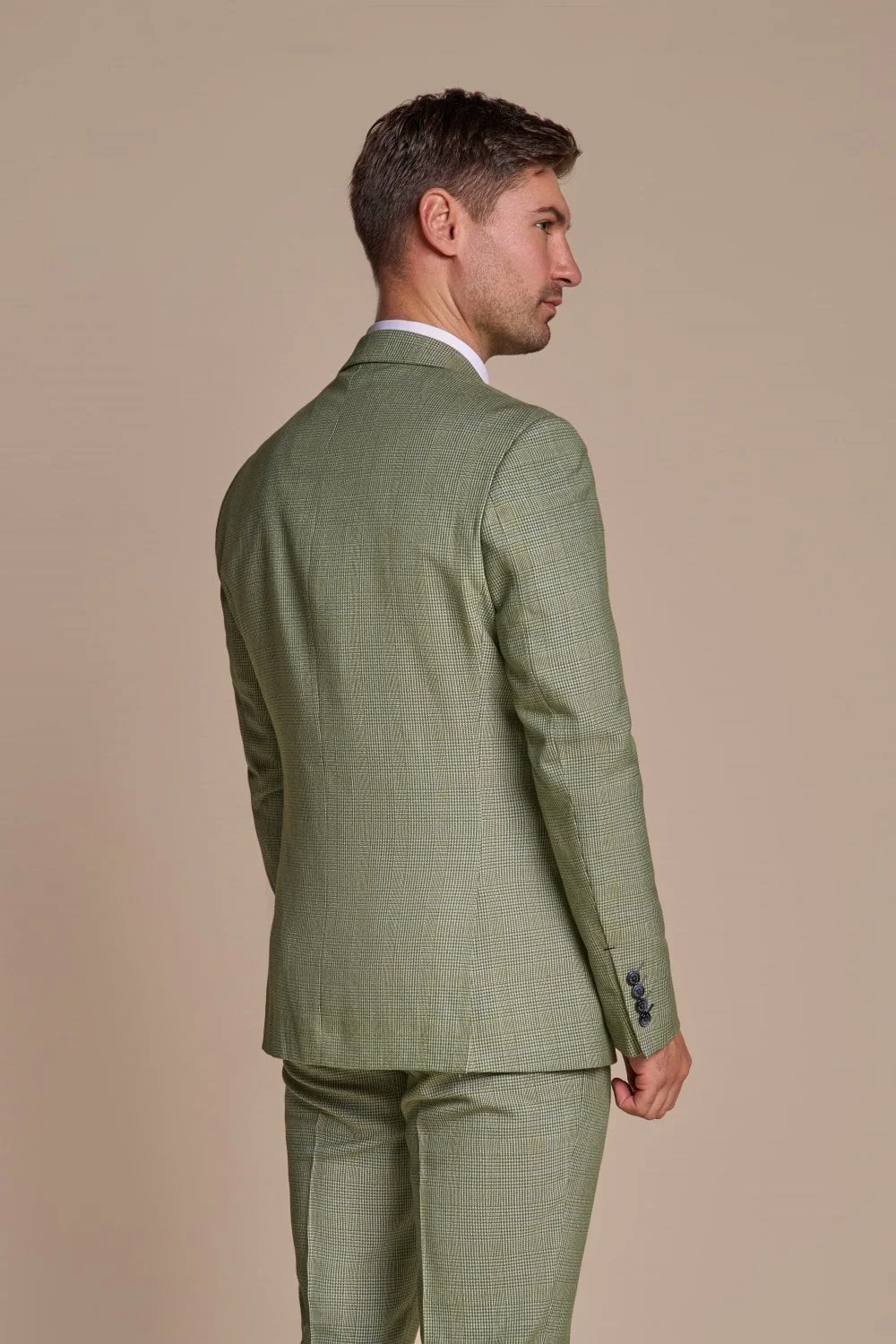 Men's 3-Piece Tweed Glen Check Suit - CARIDI - Sage Green