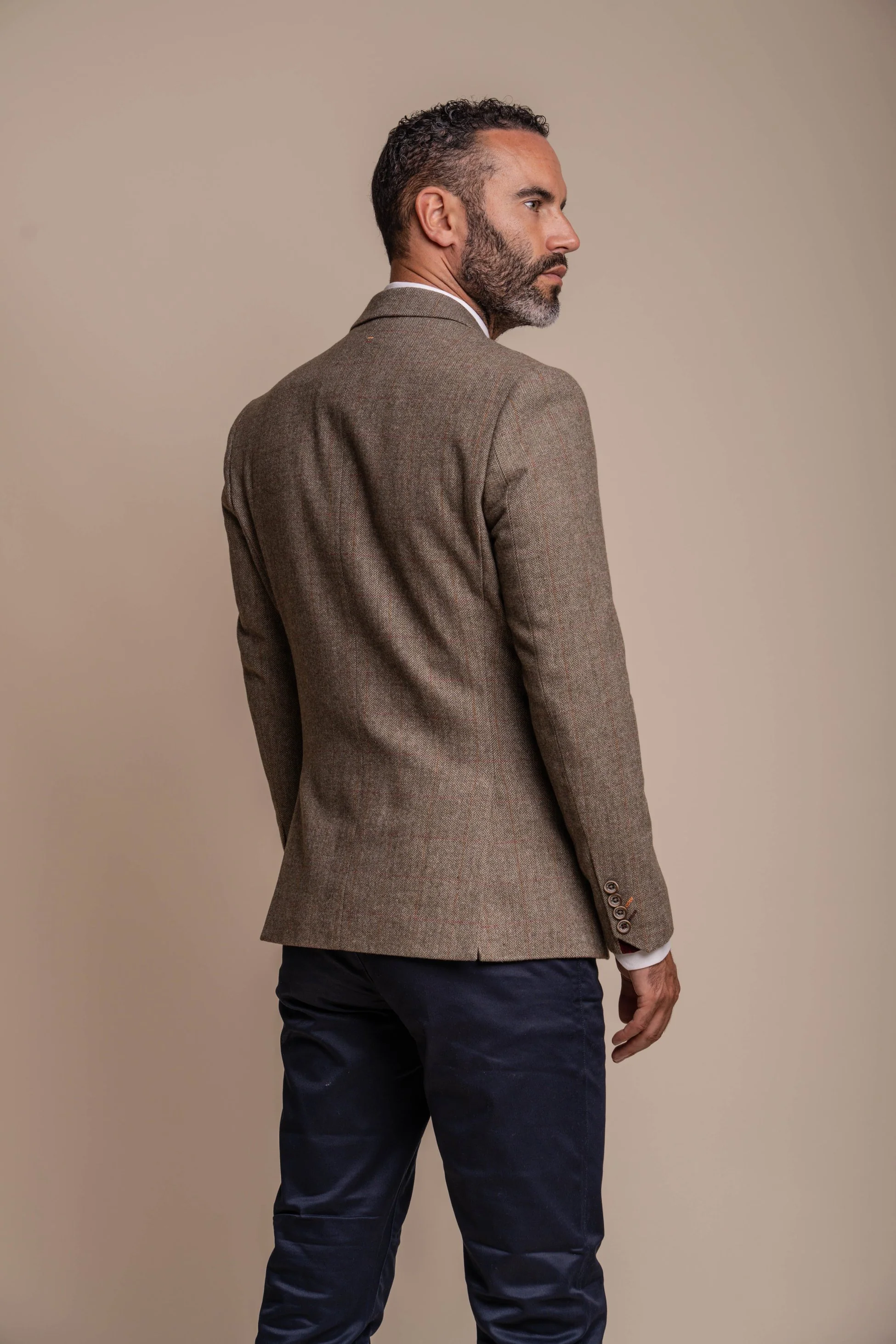 Men's Gaston Vintage Herringbone Tweed Slim-Fi Suit withNavy Chino Trousers - Elegant Formal Wear