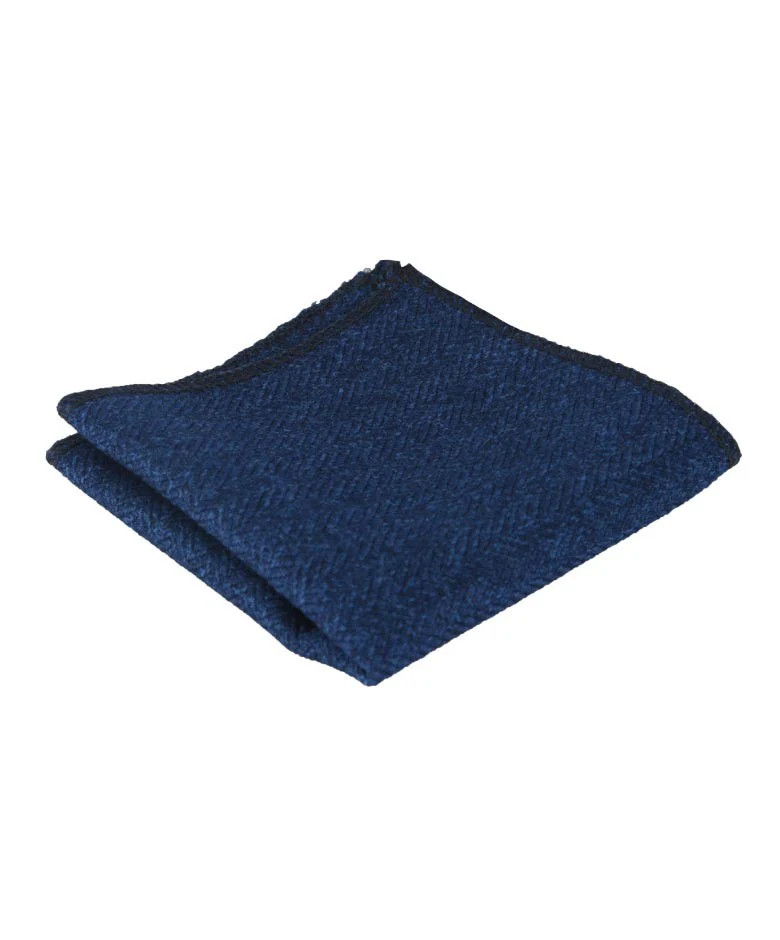 Men's & Boys Herringbone Tweed Pocket Handkerchief - Indigo Blue