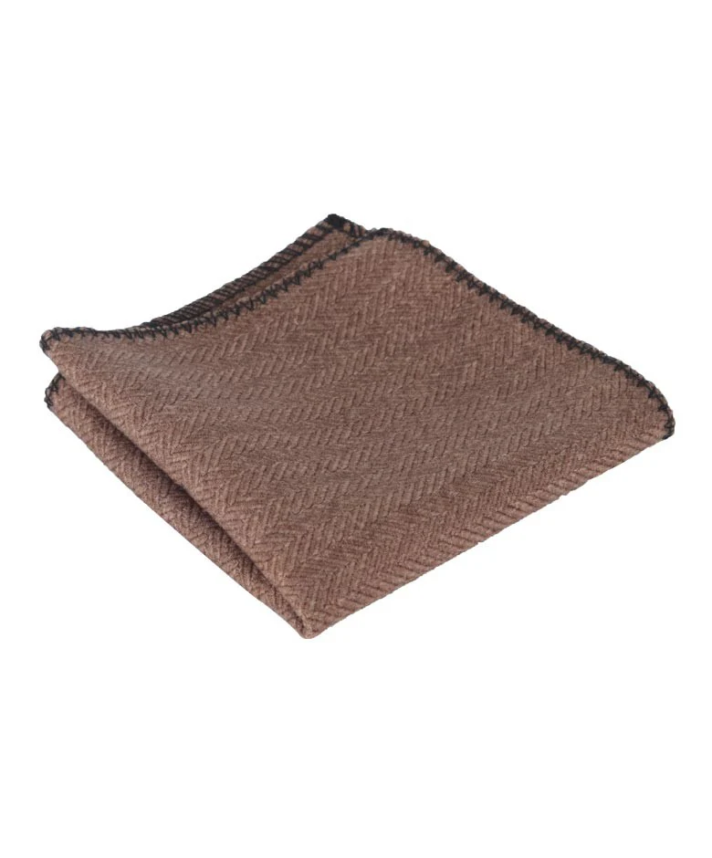 Men's & Boys Herringbone Tweed Pocket Handkerchief - Tan Brown